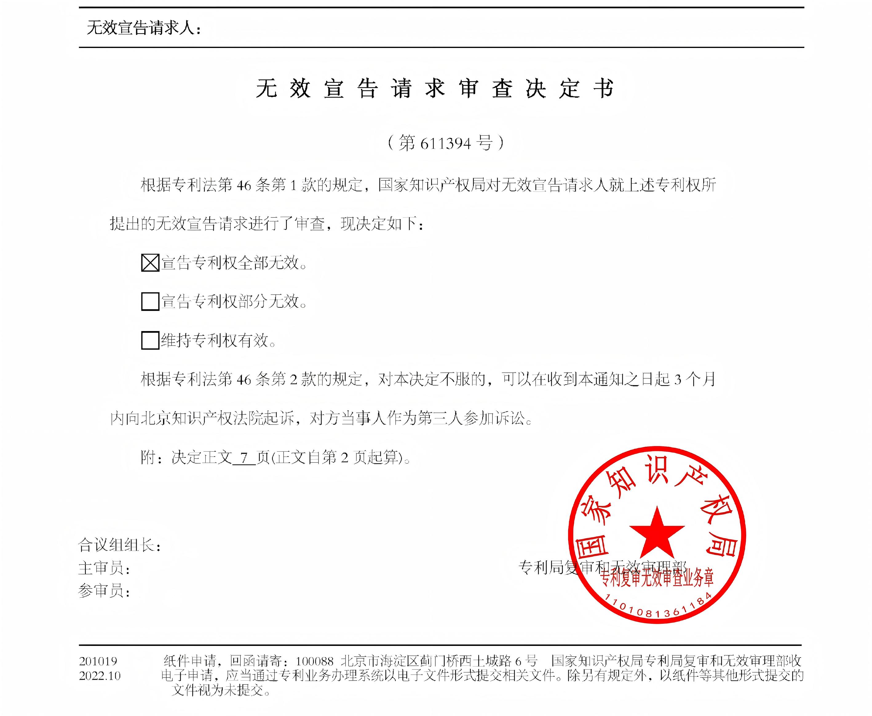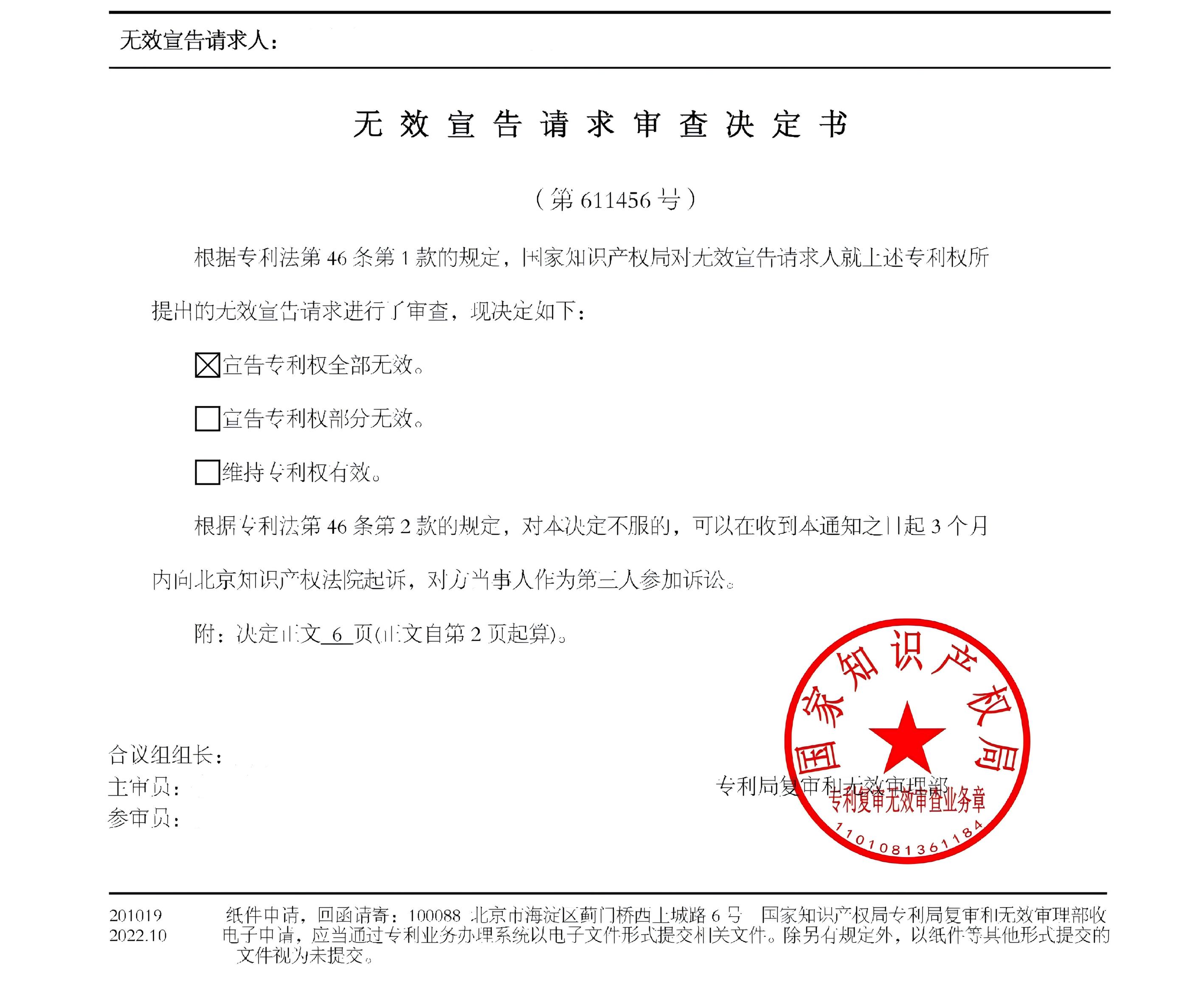 此时,被告委托我司(以下简称铭粤)对于三件专利提出无效宣告,铭粤团队凭借扎实的专业能力与高效协作,仅仅半年左右的时间通过无效程序实现原告三件专利的全部无效,有力保护当事人的合法权益,帮助当事人在专利侵权诉讼中全面胜利。